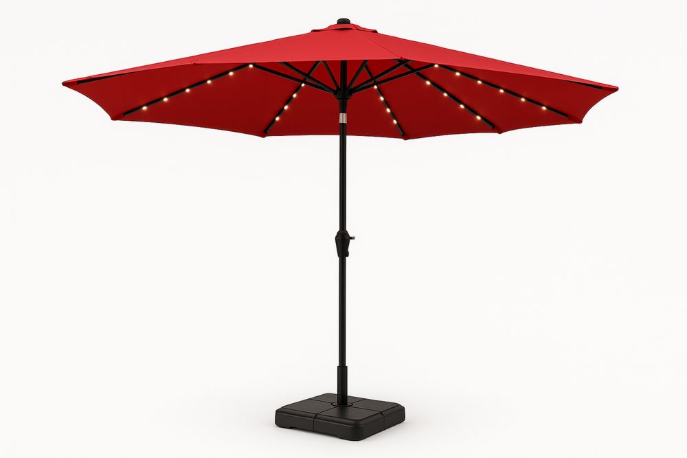 Outdoor Garden Umbrella Red with LED Lights Round Polyester Canopy 300cm
